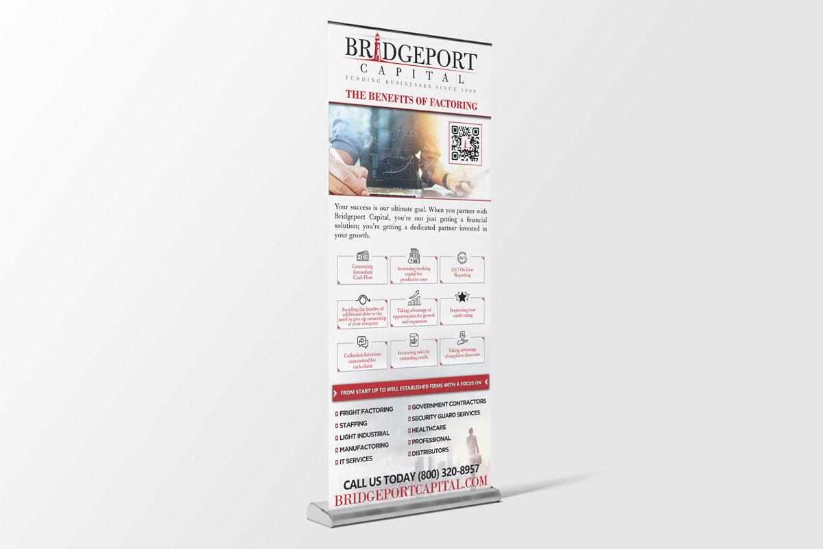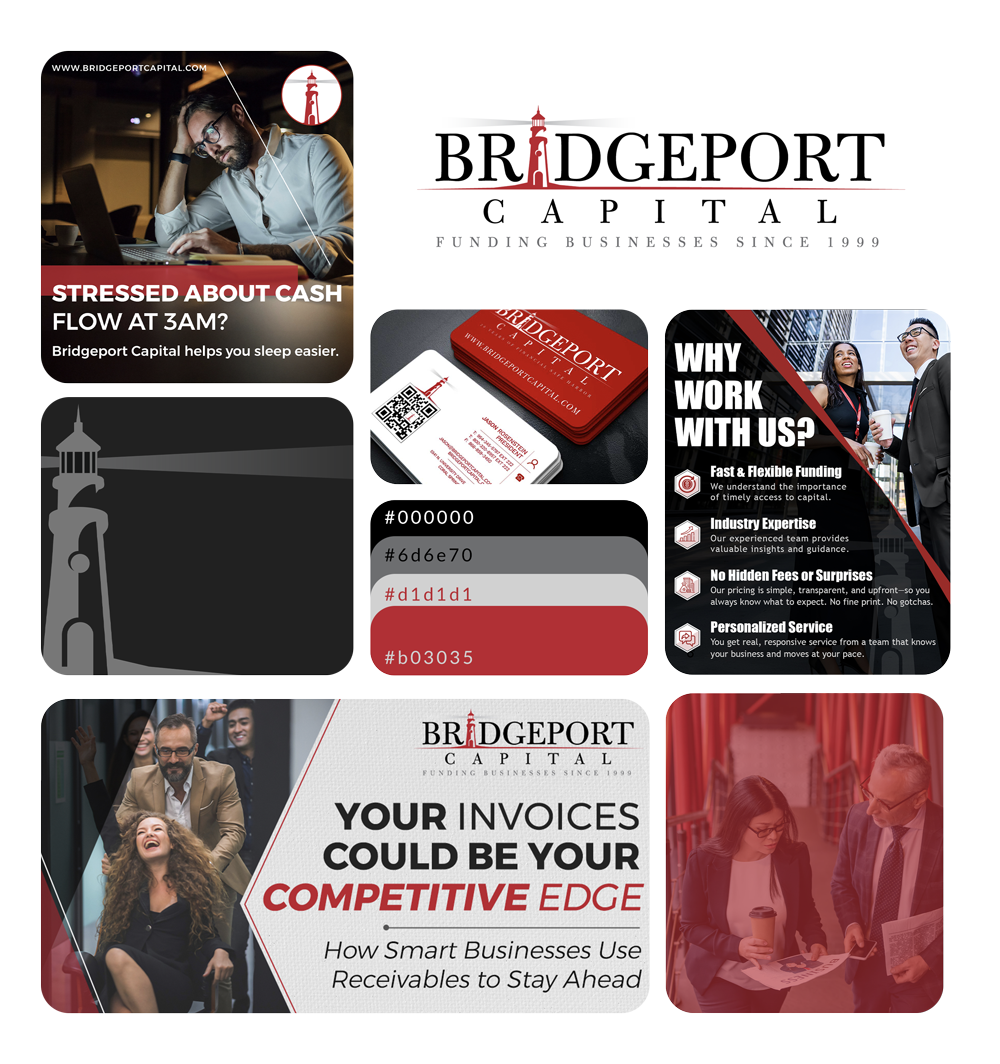 By carrying the same visual language from screen to print, Bridgeport Capital maintains a strong, recognizable brand presence wherever they show up.