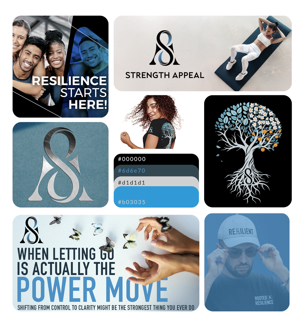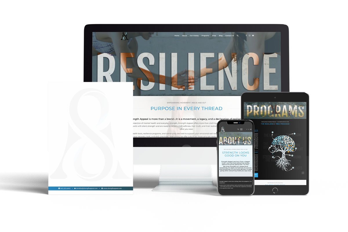 Print and internal marketing materials were designed to extend the Strength Appeal brand beyond the screen. Each piece maintains the same visual restraint and emotional consistency found throughout the digital experience.